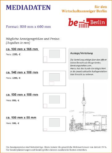 Dazu gehören das Format, Anzeigengröße und Anzeigenpreise sowie Sondermaße.