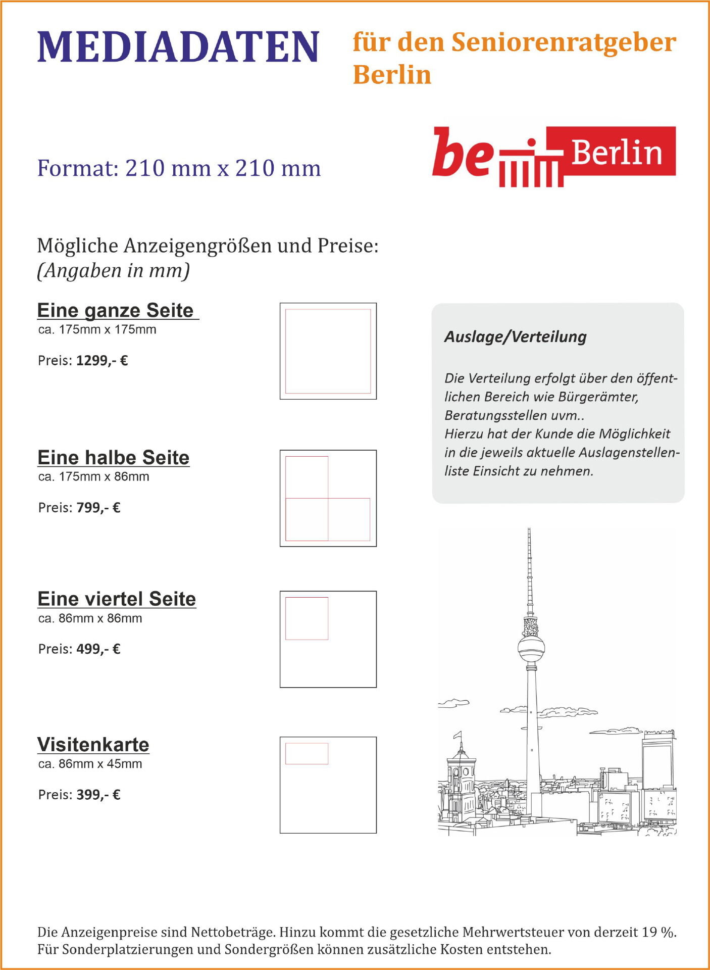 Dazu gehören das Format, Anzeigengröße und Anzeigenpreise sowie Sondermaße und Zusatzleistungen.