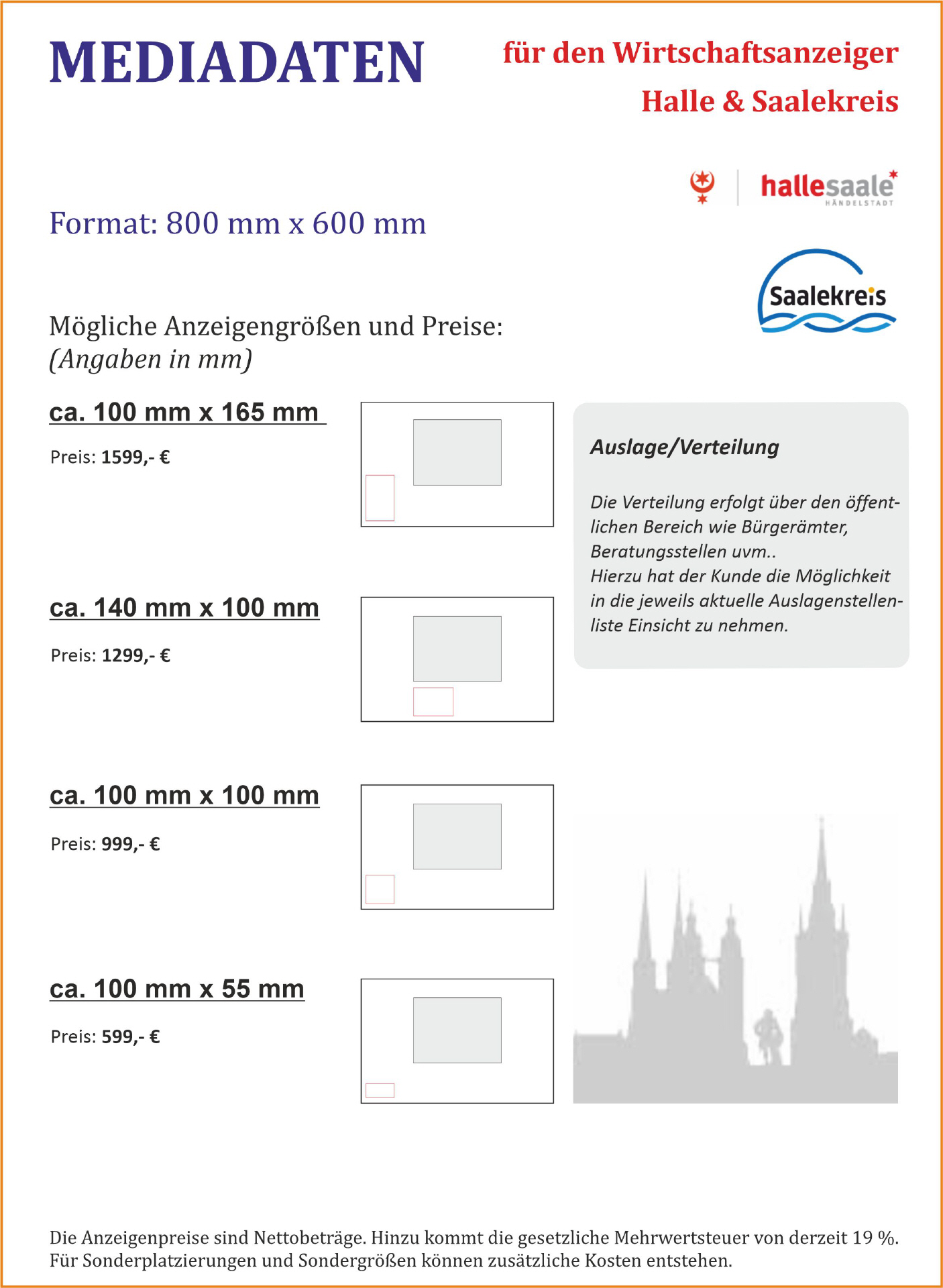 Dazu gehören das Format, Anzeigengröße und Anzeigenpreise sowie Sondermaße.